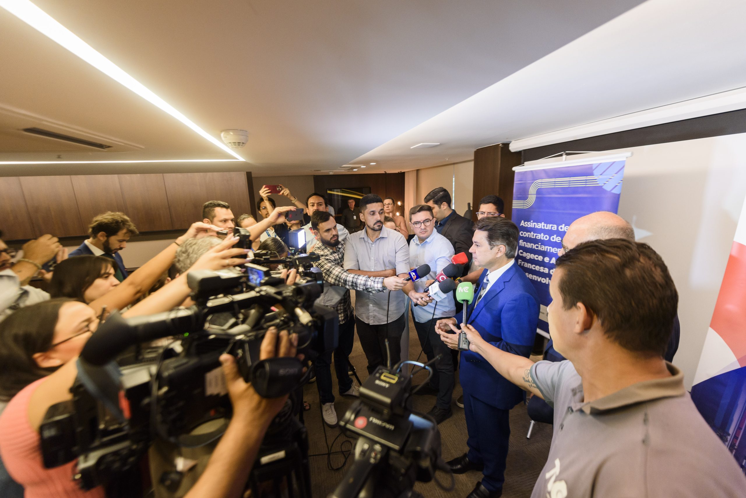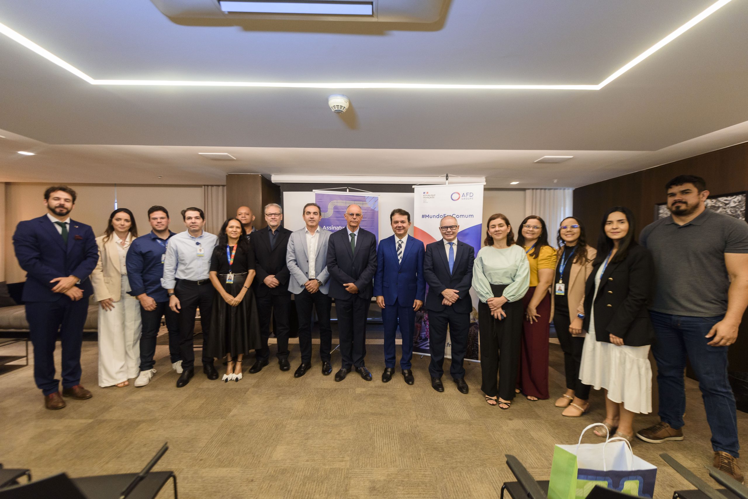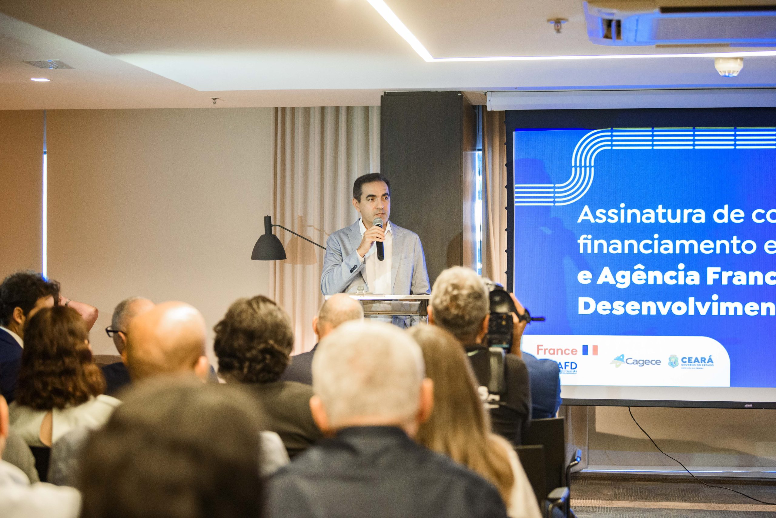 A solenidade de assinatura aconteceu no Auditório Walter Nogueira, no BS Design, e contou com a presença do presidente da Cagece, Neuri Freitas, do Cônsul-Geral da França em Recife, Serge Gas, e do diretor regional da AFD no Cone Sul, Dominique Hautbergue.