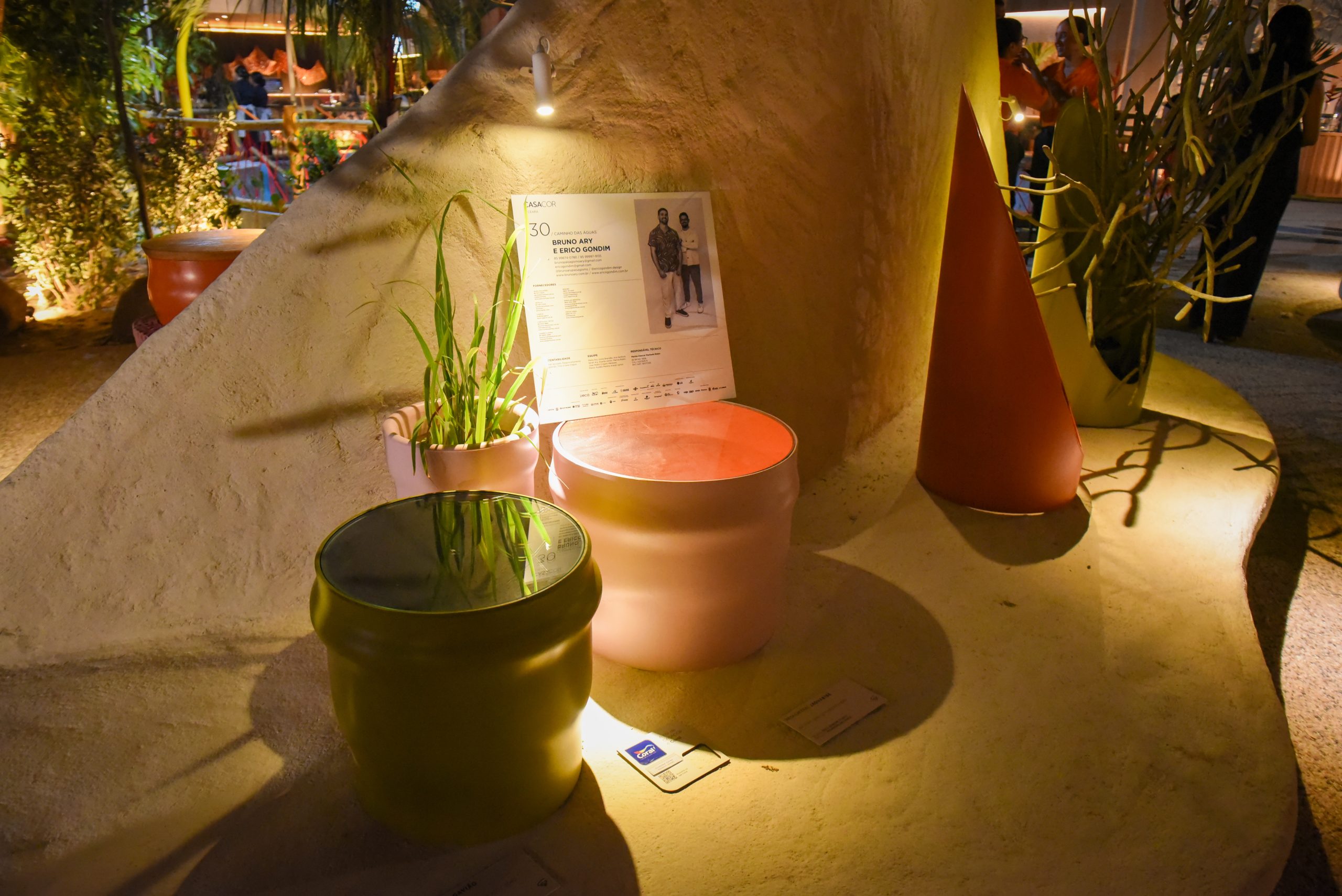 A exposição da Cagece integra o espaço “Caminho das Águas”, construído a partir de Soluções Baseadas na Natureza e assinado pelo arquiteto paisagista Bruno Ary. Cada peça traz uma homenagem aos açudes que abastecem o Ceará.