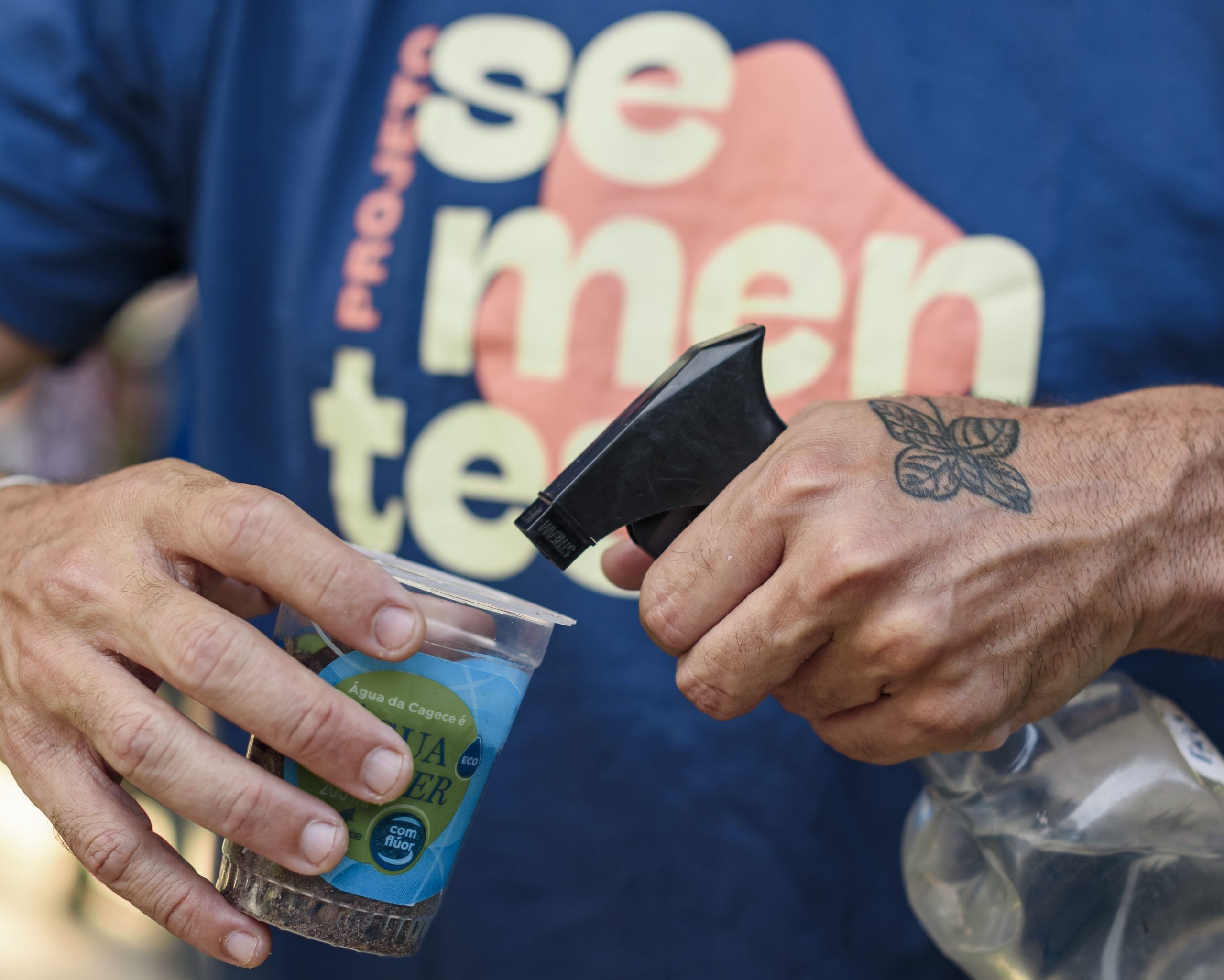 Tudo começa com a reutilização dos copinhos da Água de Beber, distribuídos pela Cagece em eventos. Os copos, que são biodegradáveis, ganham um novo propósito antes de serem descartados: transformam-se em vasinhos para o cultivo de mudas. As sementes utilizadas no projeto são orgânicas, livres de transgênicos e de defensivos químicos. Assim, ao semear, promovemos saúde e cuidado com o meio ambiente.