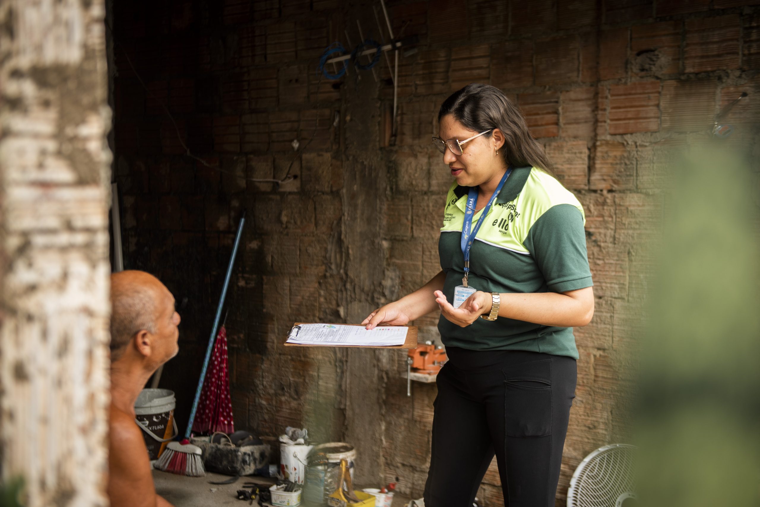 Visitas de Sensibilização: Ações de porta em porta, com o objetivo de conversar diretamente com as famílias, levando informações e orientações sobre temas ambientais e sociais que impactam o dia a dia da comunidade.