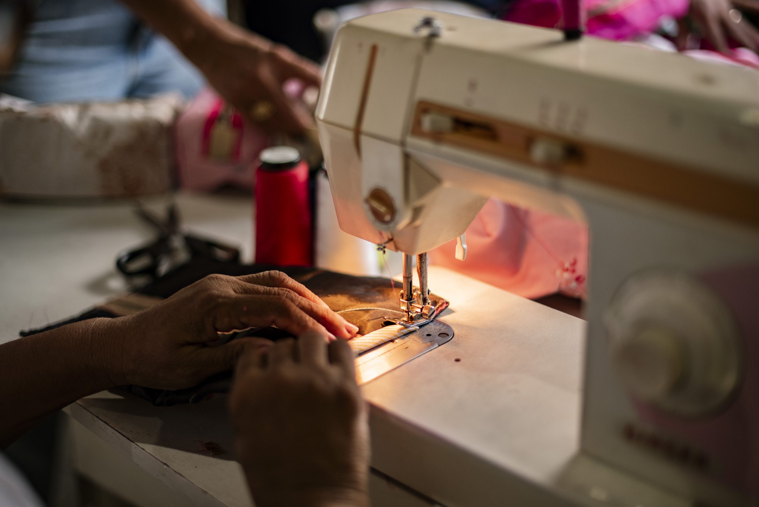 A participação em eventos socioeducativos e feiras de negócios possibilita a prospecção de empresas parceiras para doação de resíduos e venda dos produtos feitos pelas mulheres dos Grupos Produtivos. Toda a renda vendida é destinada às mulheres beneficiadas pelo Programa