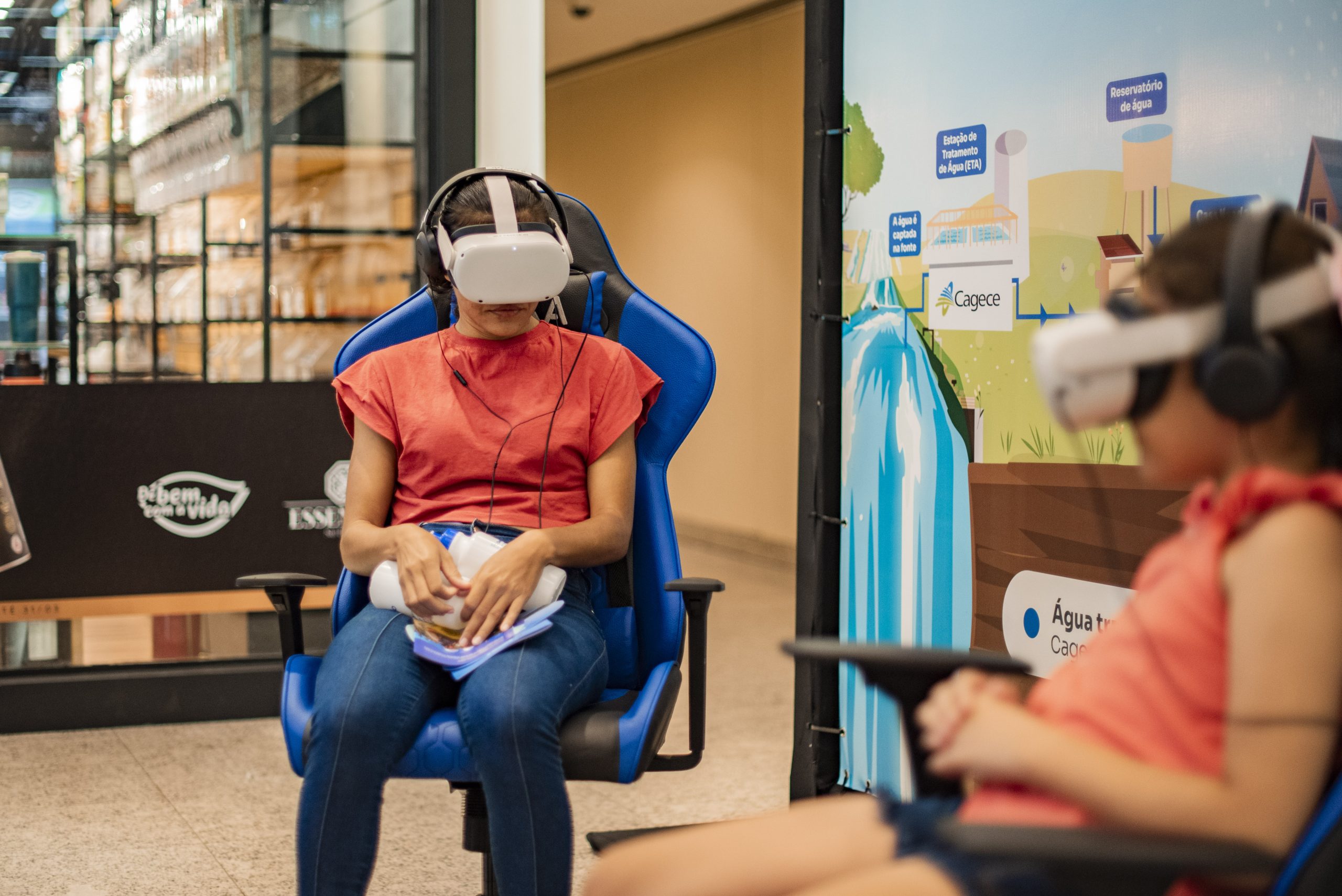Por meio de uma visita em realidade virtual, o participante pode conhecer as instalações da ETA Gavião e da ETA Oeste ou viver a experiência de estar em um submarino no açude Gavião, junto aos nossos mascotes, para aprender sobre todas as etapas envolvidas no tratamento da água que é distribuída à população cearense.